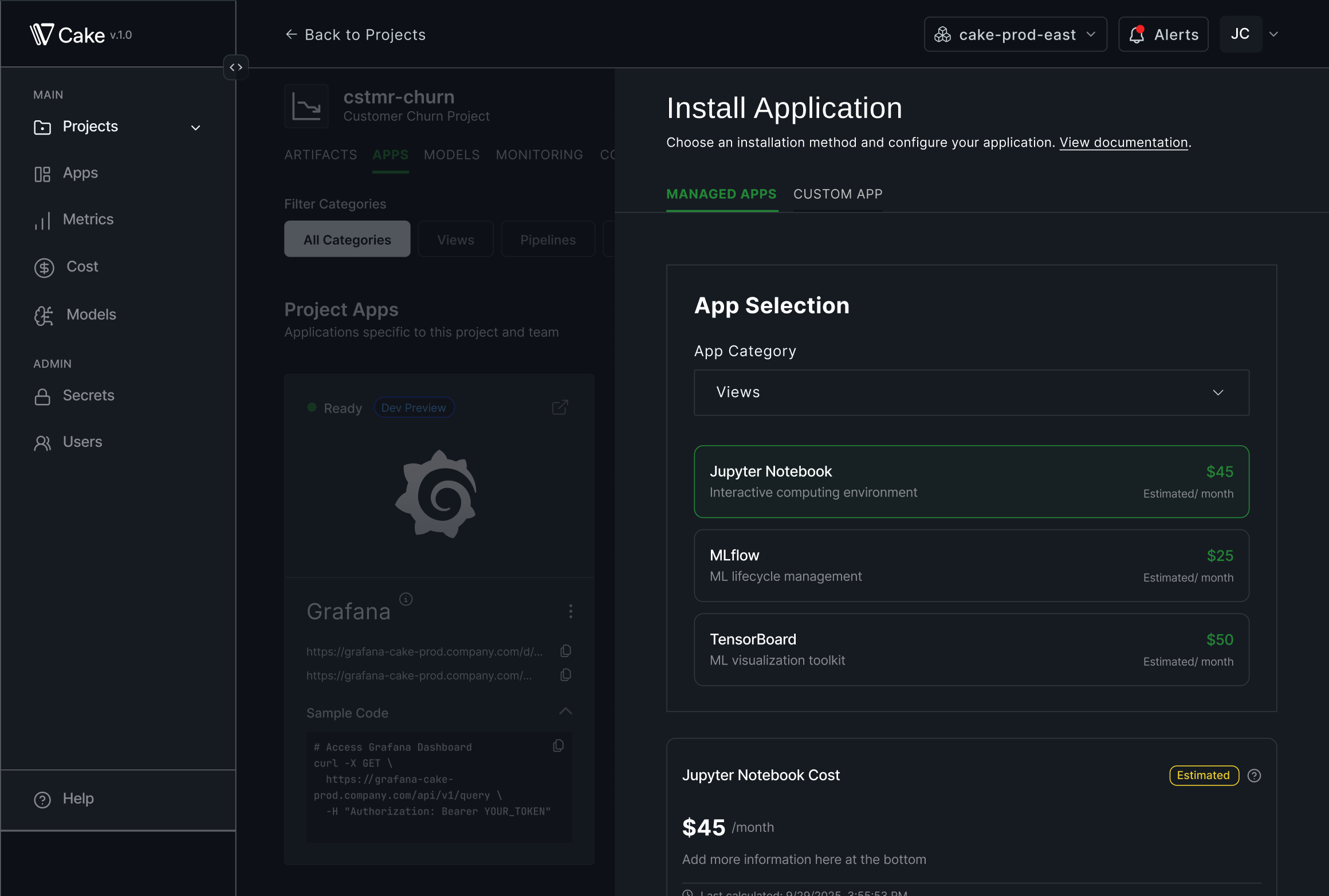 Stop flying blind. Cake gives finance and engineering teams full transparency into model, compute, and project-level spend.